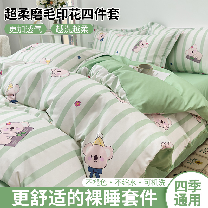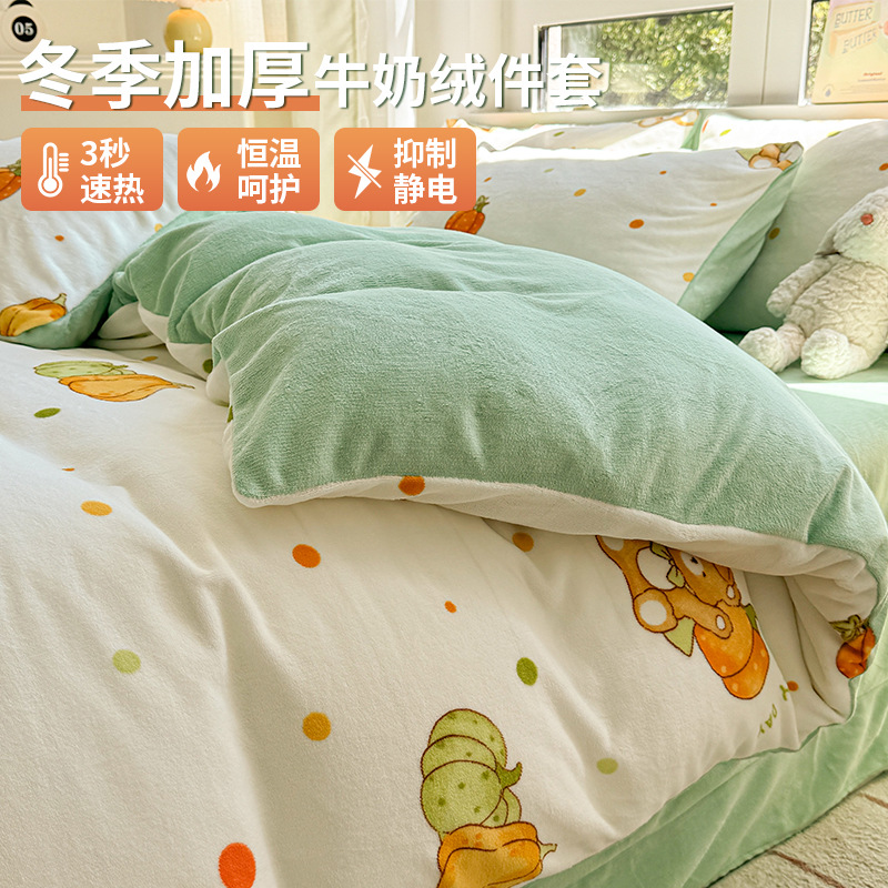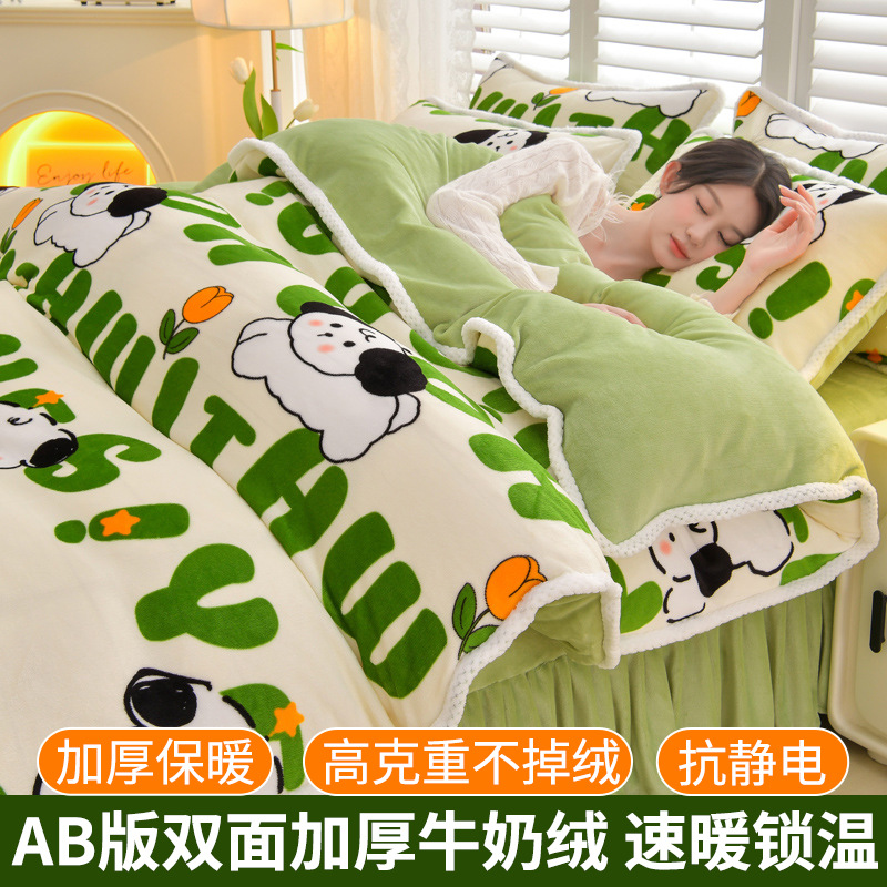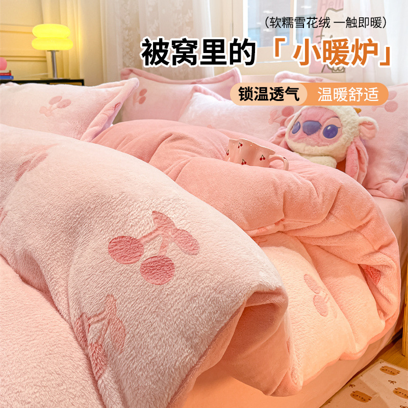 2024新型かわいいアニメ児童ベッド4点セット牛乳ベルベットのベルベット4点セットins風