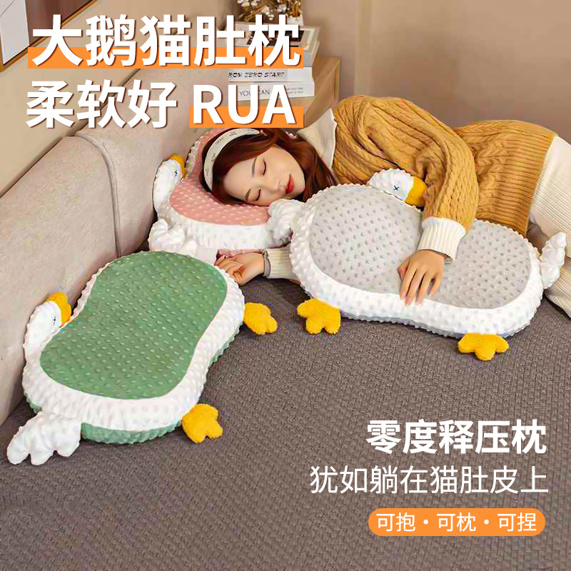 かわいい一人のガチョウの猫の腹の枕の記憶綿の枕の睡眠はゆっくりとリバウンドします。