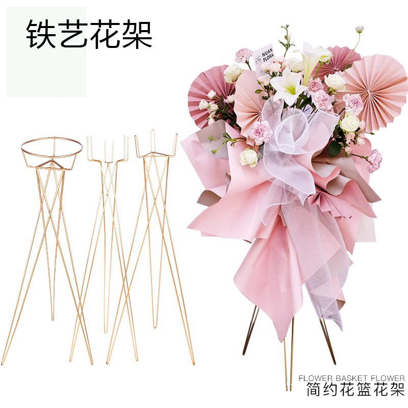 金属三脚金メッキフラワースタンドスタンドフラワーショップフラワーアレンジメントオープニング鉄棚三脚塗装フラワーバスケット卸売
