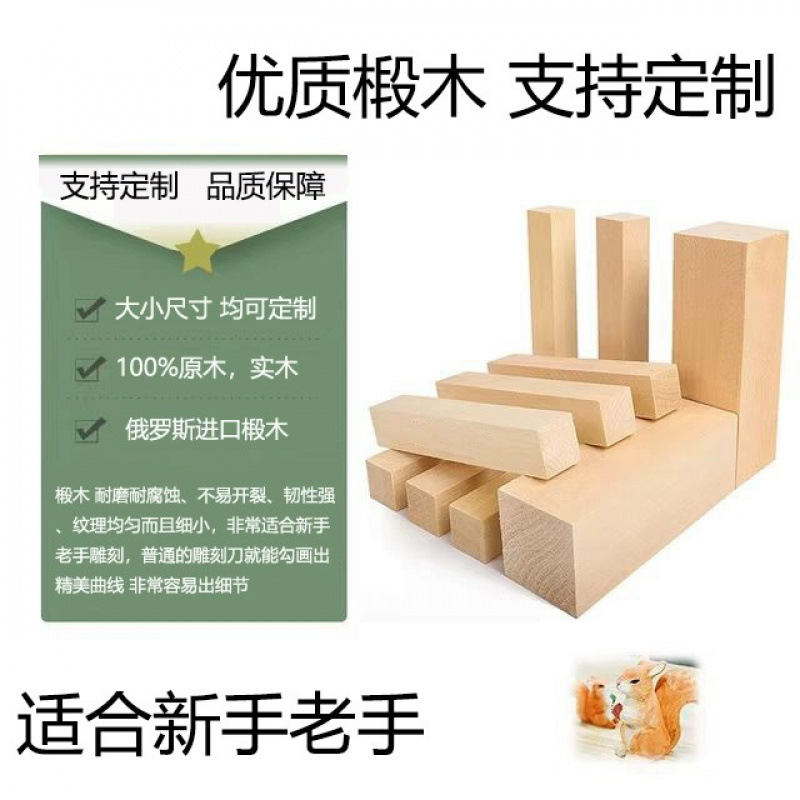 輸入バスウッド材、木製ブロック、手彫りDIY材料、長い無垢材
