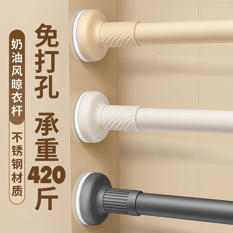 パンチングなしの伸縮ロッド取り付けカーテンロッドシングルロッドシャワーカーテンロッドブラケット昇降ローマン乾燥ロッド衣類ラックサポートロッド