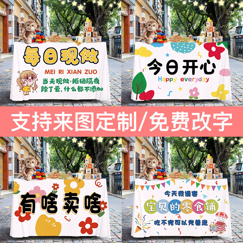 テーブルクロスの屋台は夏の夜市で広告布のテーブルクロスの街角の屋台の看板を押して字を変えます。