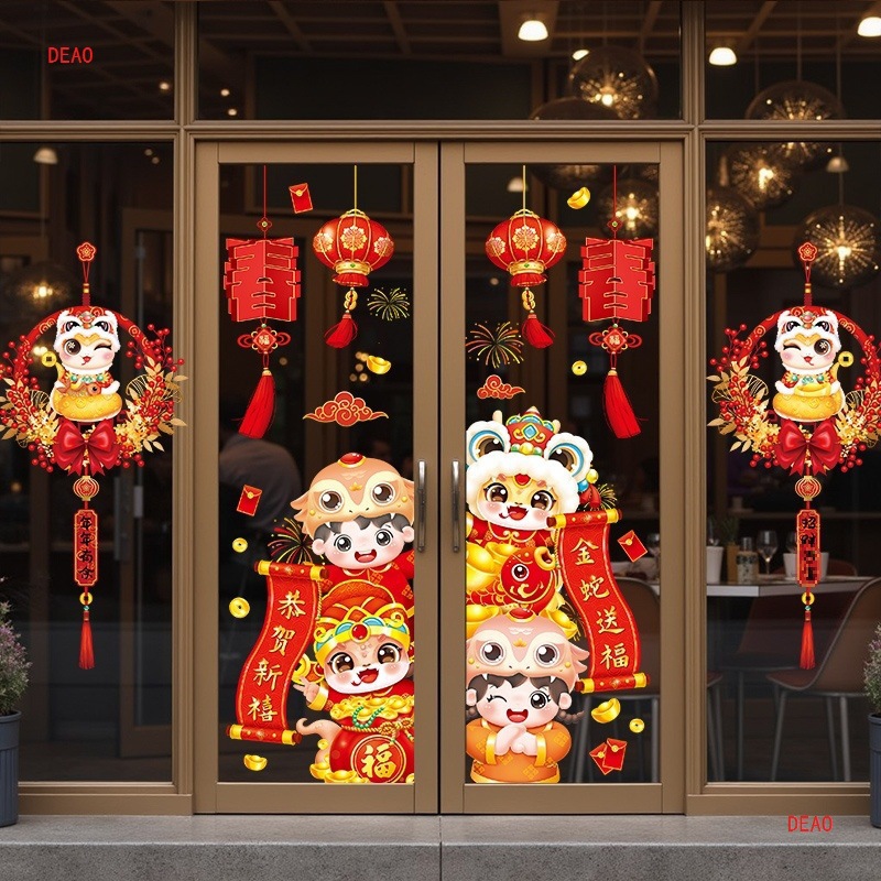 蛇年新年装飾静電ステッカー春節レイアウトプロパティユニットドアガラスステッカーウィンドウステッカー