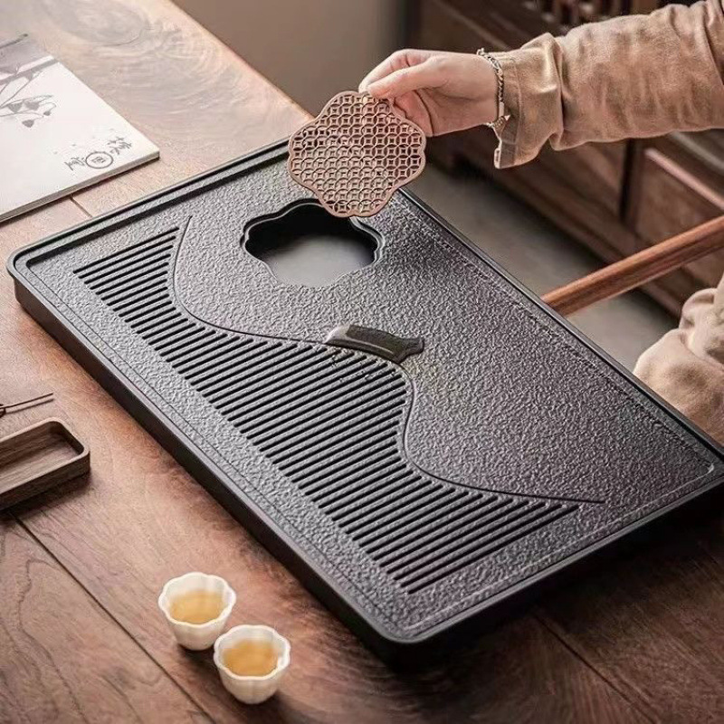 軽豪華家庭用擬似烏金磁器石茶盤茶道具小型茶台貯水排水式乾泡台烏金石