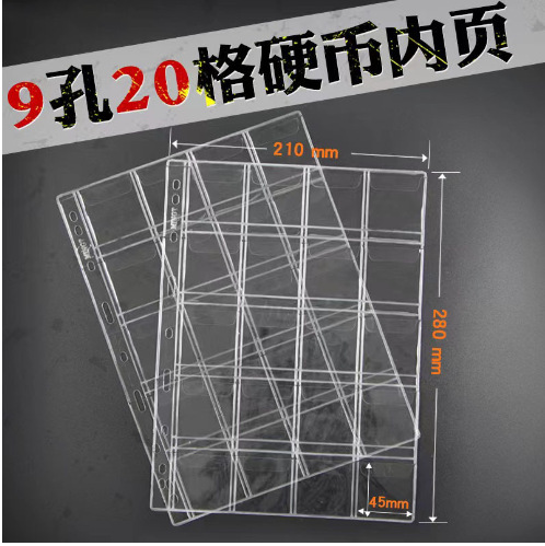 コイン収集簿内ページ9穴9格大容量高透明内ページ保護記念貨幣切手保護冊内ページ