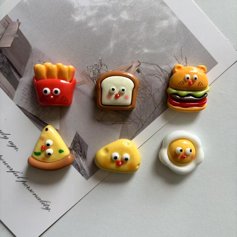 国境を越えた新しい樹脂製DIY冷蔵庫マグネット、クリエイティブで可愛いフライドポテトとパンのデザイン、家庭用キッチン装飾用磁気ステッカー卸売