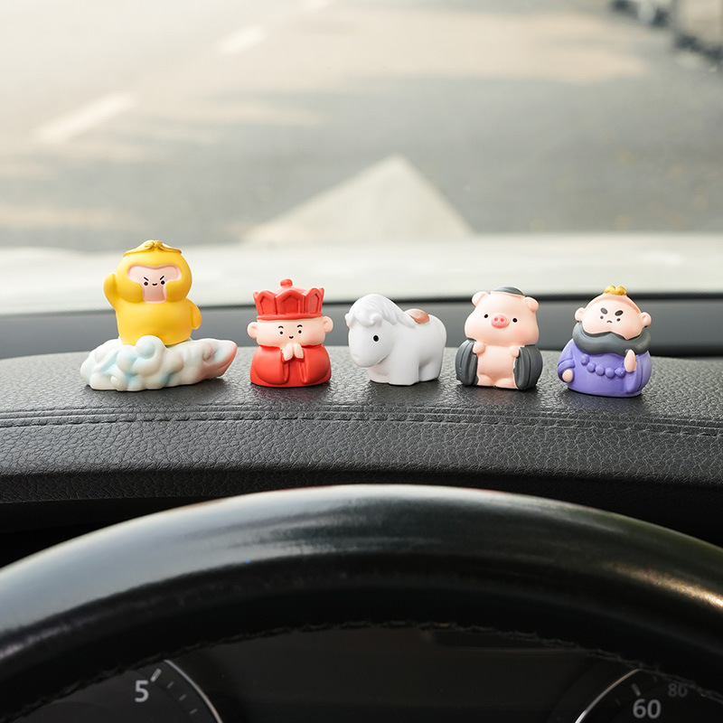 車の減圧装飾品、四人の師と弟子、西遊記、かわいいミニ車のバックミラー、車のセンターコンソールの装飾