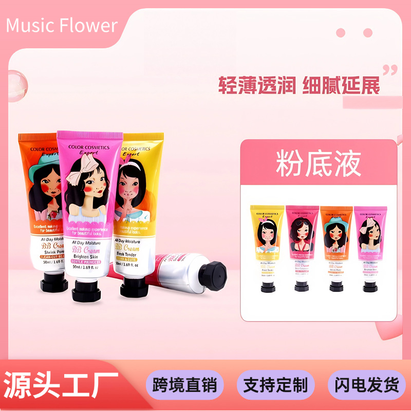 MusicFlower/沁彩50ml保湿bbクリーム潤いカバーファンデーションヌードメイクコンシーラーファンデーション直販