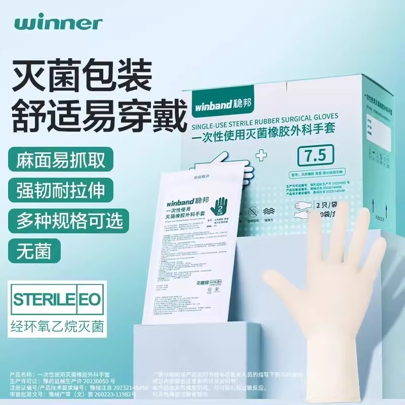 穏健医療用ラテックス使い捨て手術無菌手袋独立装着医師外科ゴム検査手袋卸売り