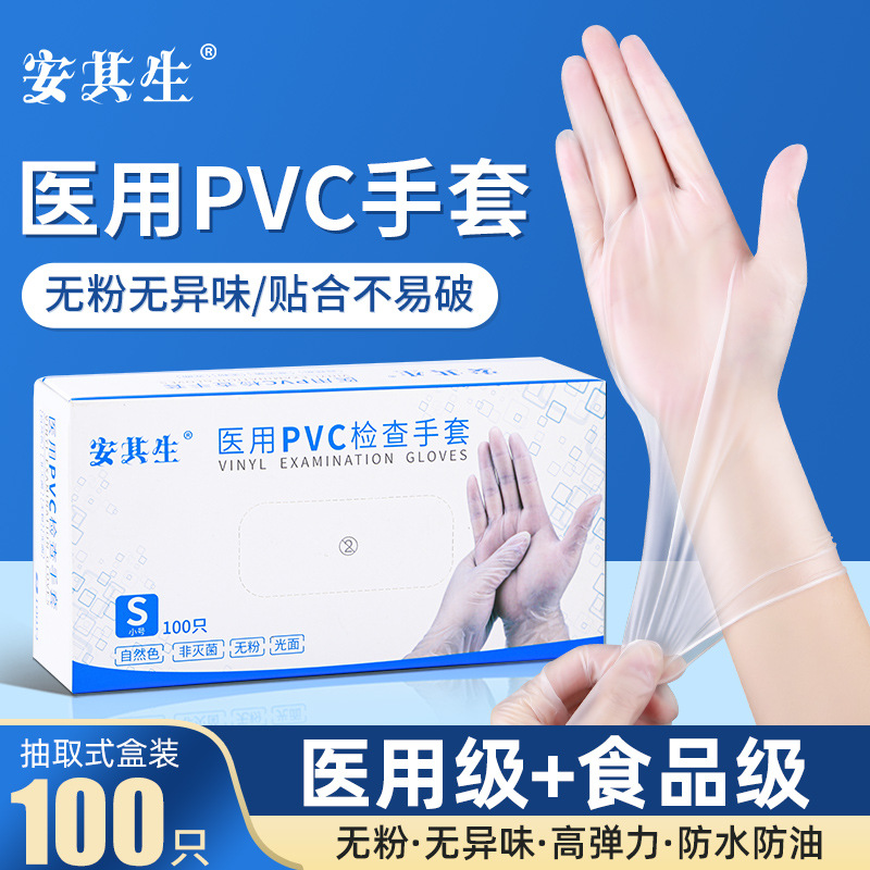安其生医療用PVC検査手袋使い捨て食品級キッチン食器家事耐久医療手袋100