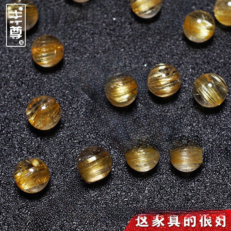 天然ブラジル 7A ゴールデンヘアクリスタルルースビーズ diy 手作りブレスレット滑らかなヘアチタンクリスタルシングルビーズマルチ宝半完成アクセサリー