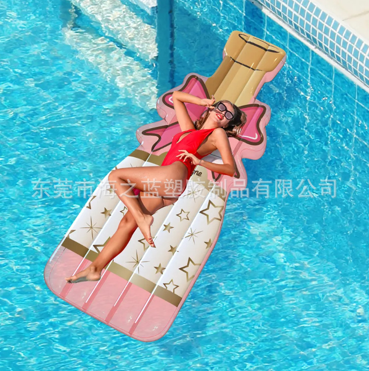 新型カスタム厚いPVC材質の空気入れ瓶の浮床の水上に大人の浮き輪が浮いています。