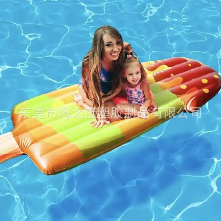 源工場はpvcインフレータブルアイスクリームの甜筒を作って大人の浮き輪に乗ってカラーアイスクリームの浮床に乗ります。