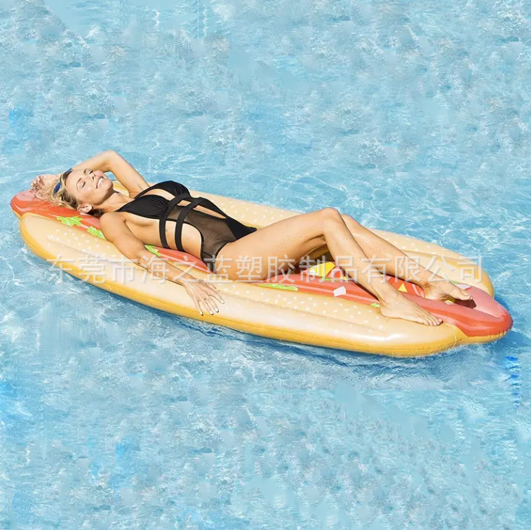 国境を越えてカスタマイズされたシングル環境保護厚いpvc屋外プール水上空気入りホットドッグパン浮遊ベッド
