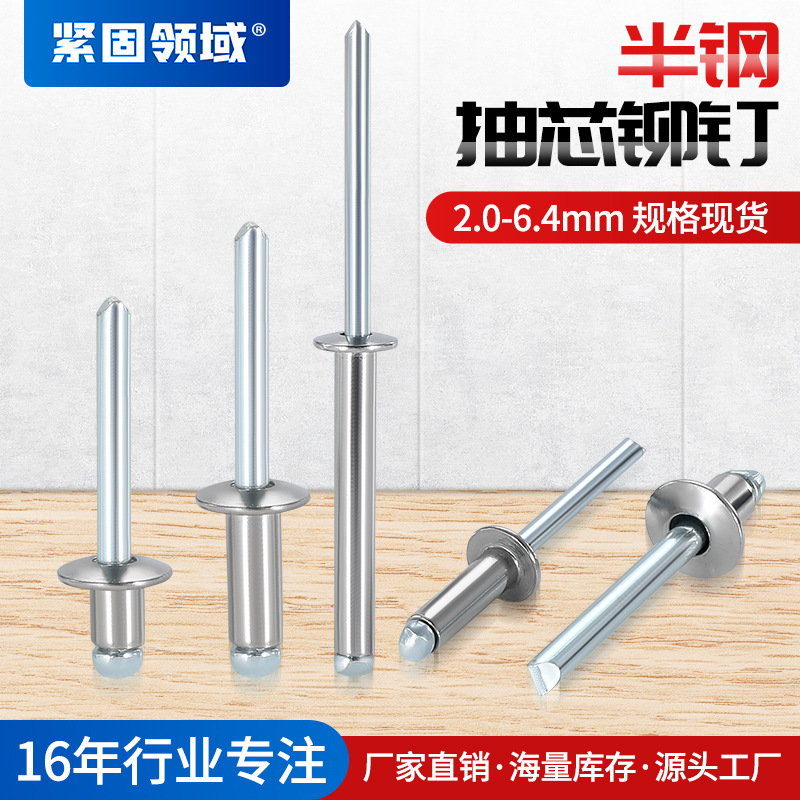 304ステンレス製のオープンタイプのプルピン平円頭柳釘半円頭リベットのプルリベット円頭半鋼芯抜きリベット