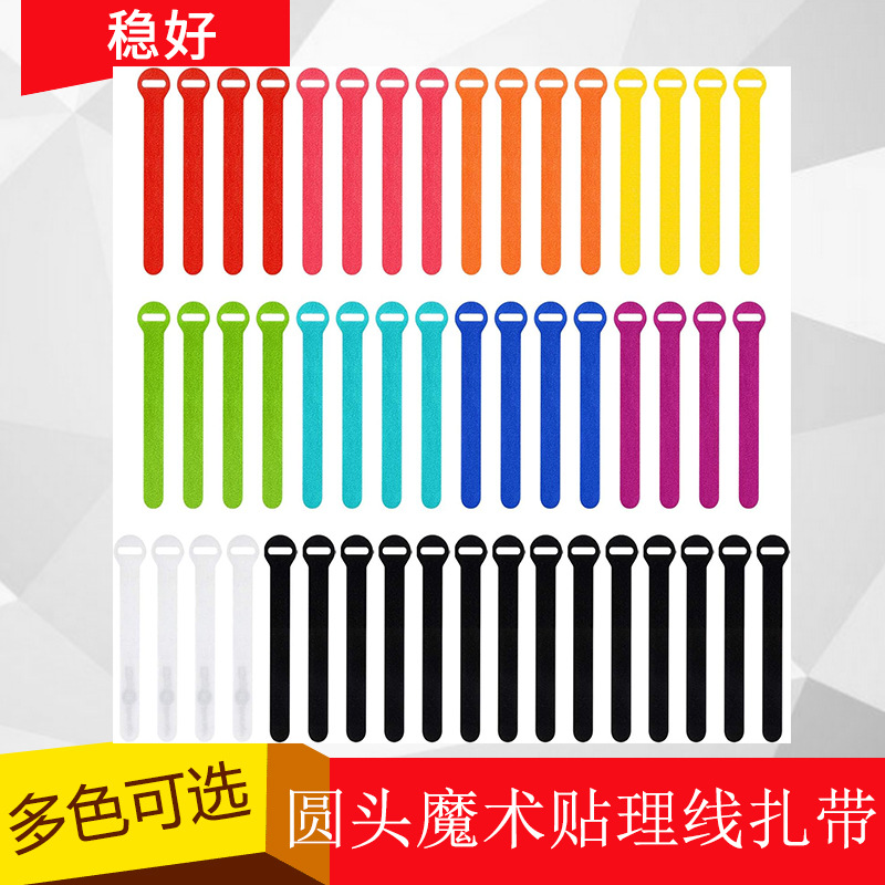 ナイロン丸頭自己掴みケーブルタイ再使用可能フックリング理線ベルト自己接着固定データ線タイ