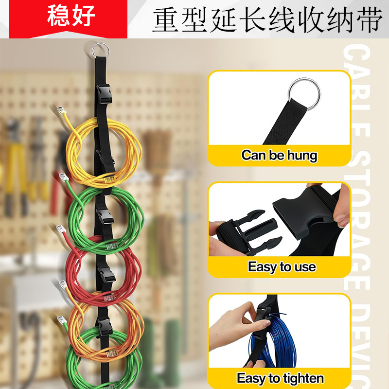 アマゾンの新しいハンドル付きの重いストレージバンドは、ケーブル、ロープホース用で、延長線収納バンドが簡単です