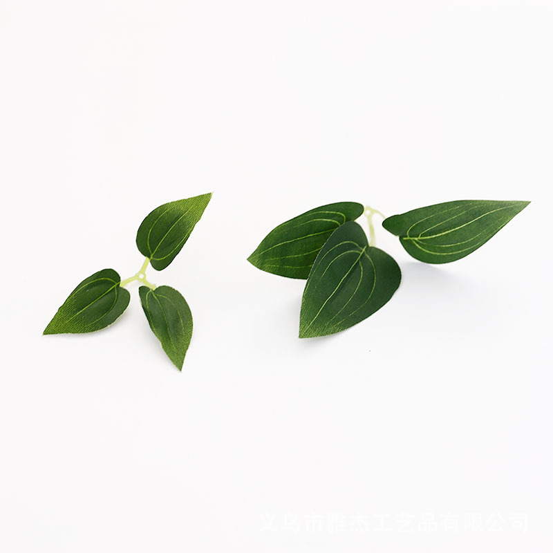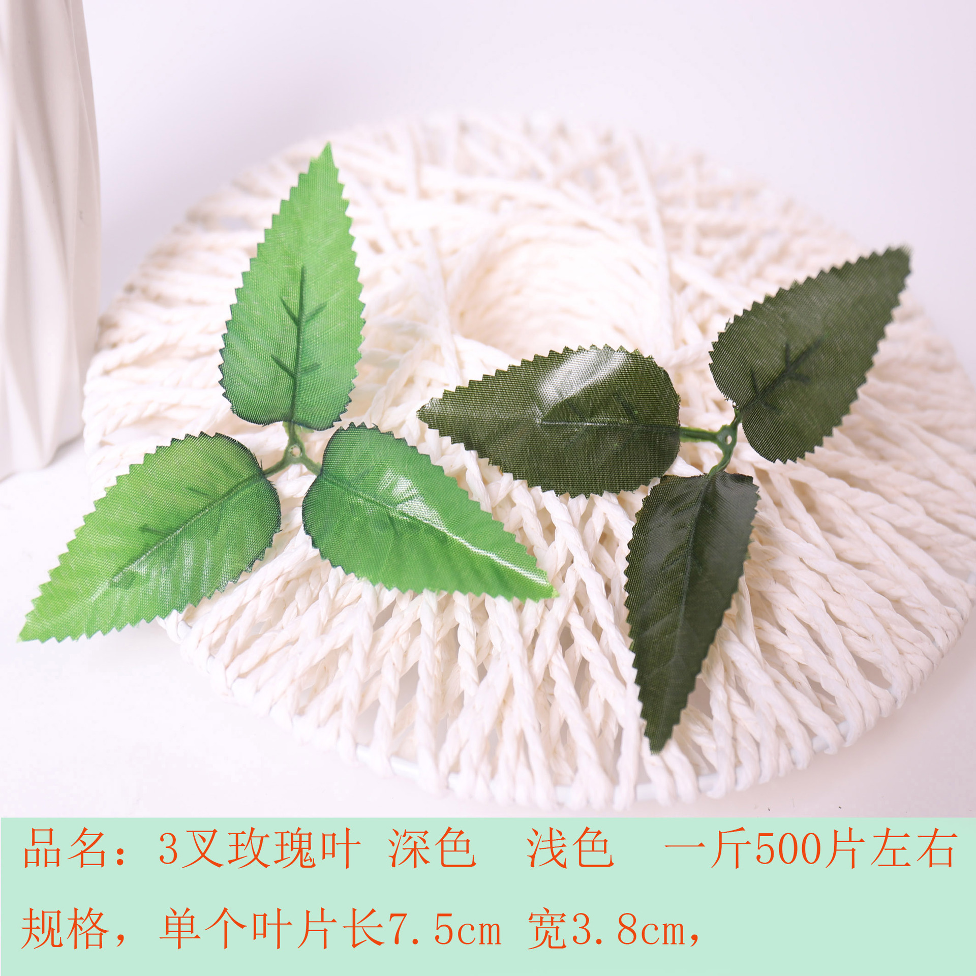 工場直販の造花葉、3股のバラの葉、手作りのシルクネットフラワー素材、結婚式の装飾