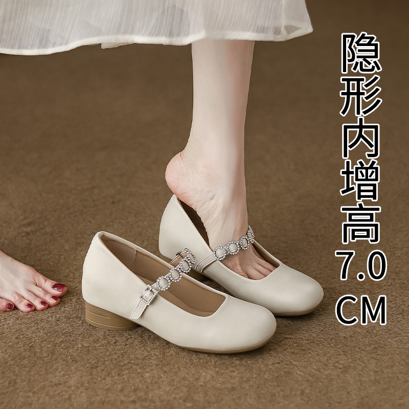 773-5~女性用フレンチホワイトメリージェーンシューズ2025新しいスタイルのラインストーンニッチ優しいスカート付きインナー高さ増加靴