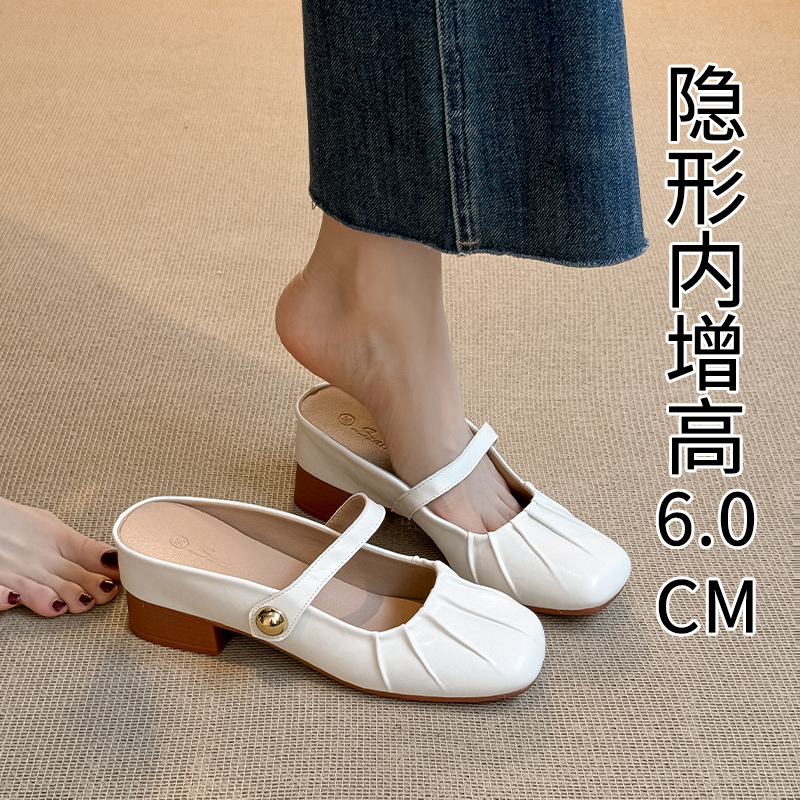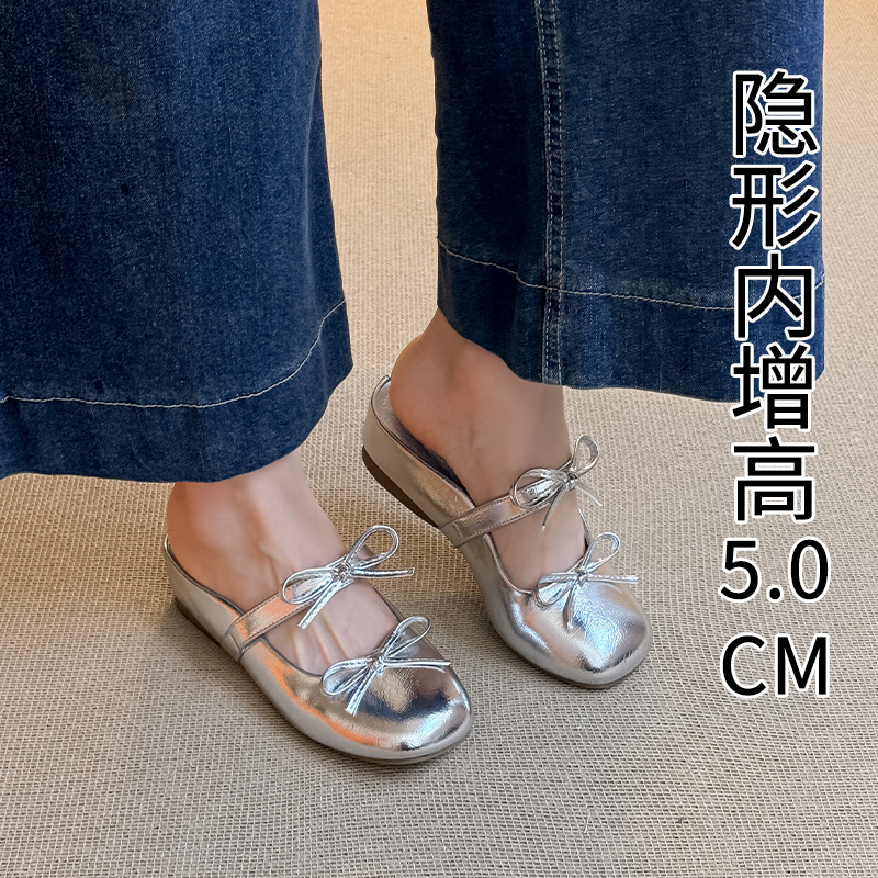 A63-10~2025春新作韓国風包頭インナー高めボウハーフドロップレディースアウターメリージェーン