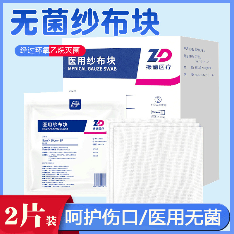 振徳医療用ガーゼの無菌使い捨て砂布の傷口に医療脱脂綿ガーゼの敷物を2枚詰めます。