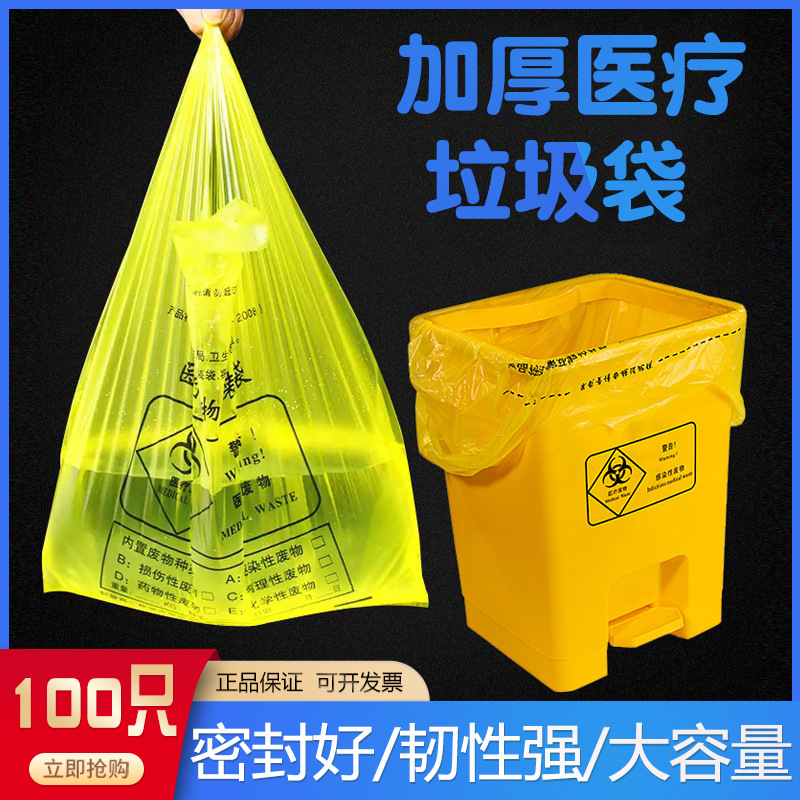 医療ゴミ袋黄色ポータブル厚手大サイズ医療ゴミ袋平口業務用医療廃棄物専用袋