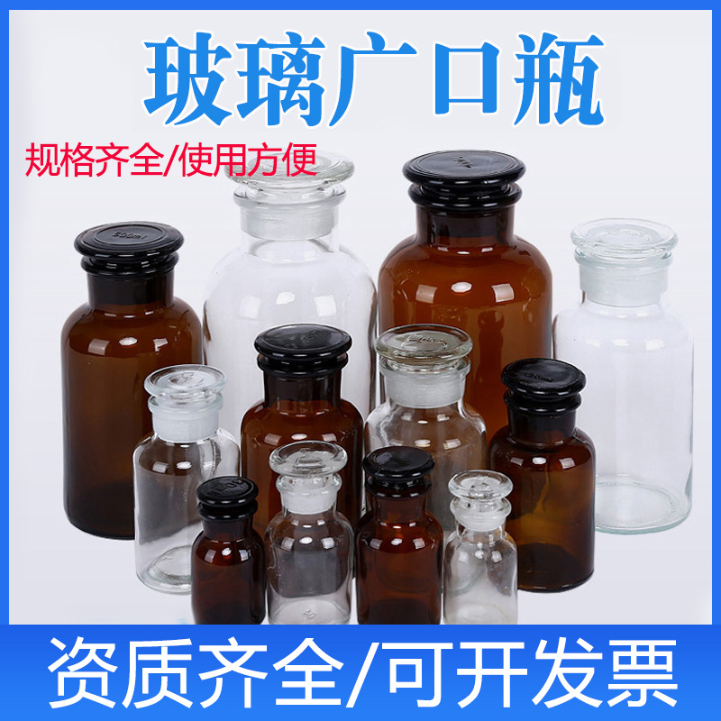 試薬瓶のつや消し口の透明な広口瓶の化学薬綿のアルコールの瓶を分けて厚いガラスの茶の茶色のガラスの瓶を詰めます。