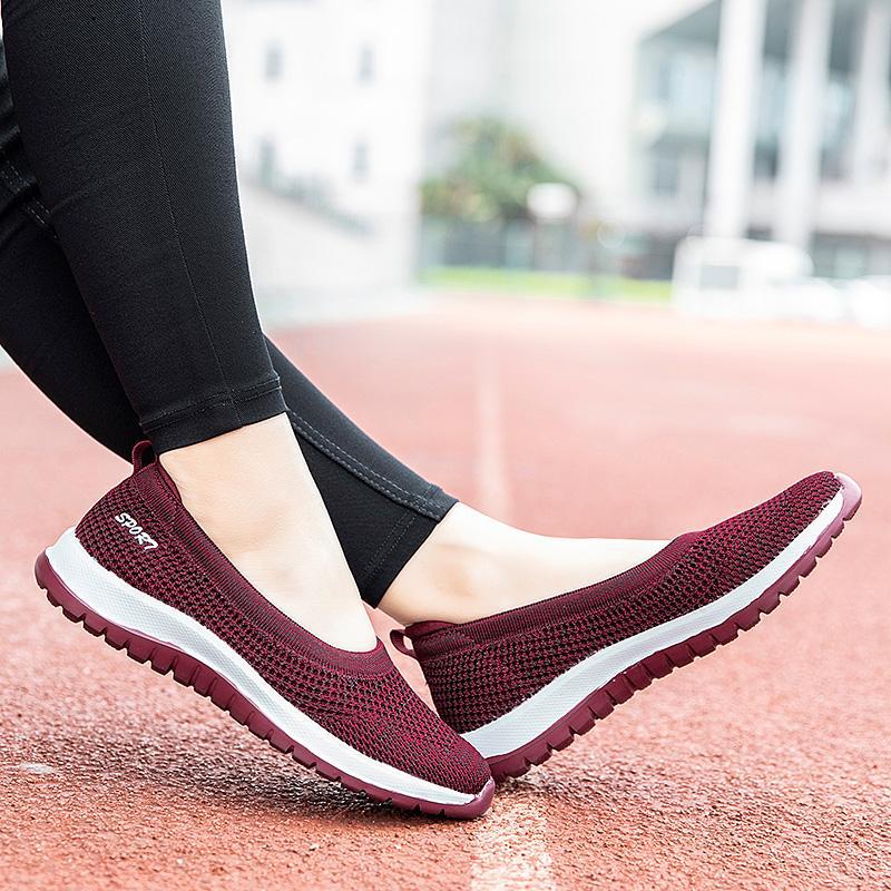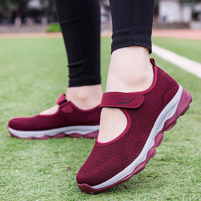 2025夏の新型飛織女靴は老人の健歩靴を足で漕いでいます。