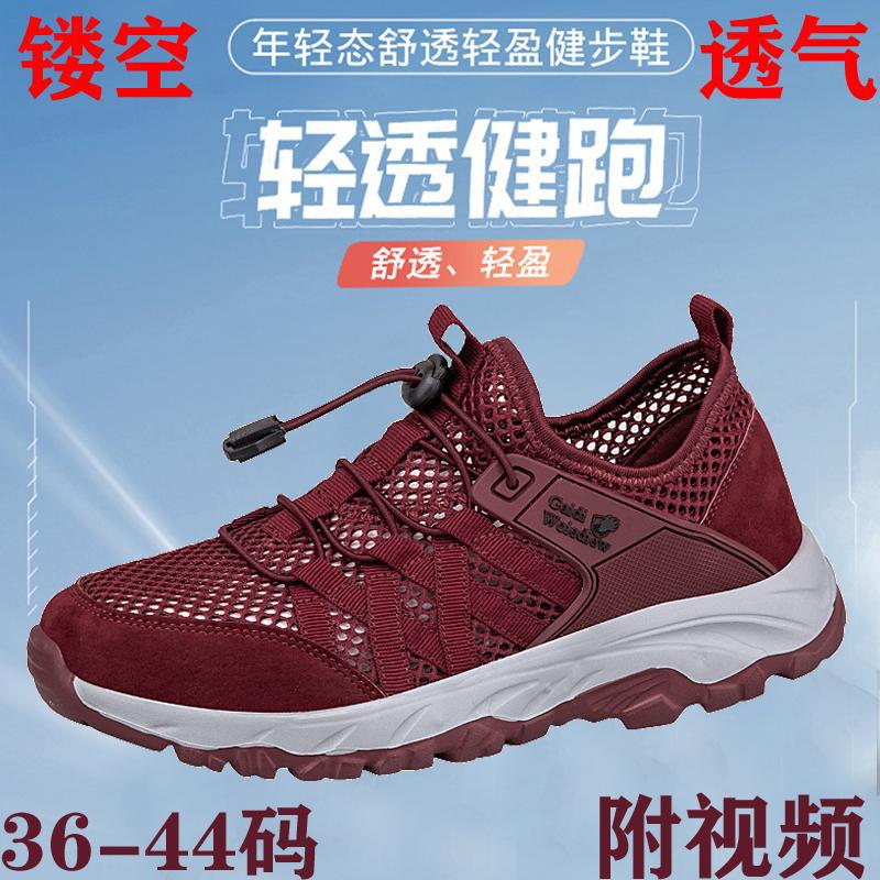 夏の通気性中高年スポーツシューズ滑り止め軟底健歩一足レジャーネット男女靴父靴