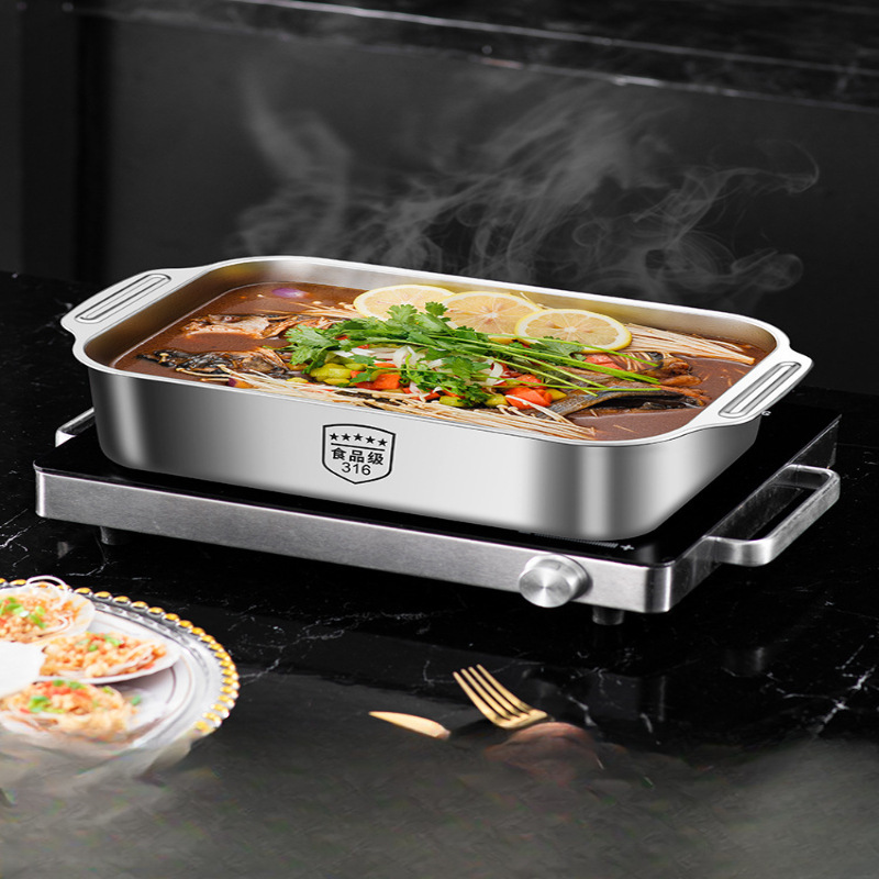 316ステンレス焼き魚皿家庭用長方形家庭用深皿商用可明火電磁ストーブ304焼き煕の錦