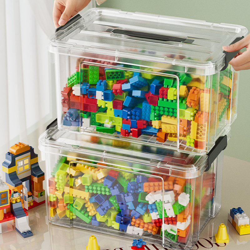 レゴの小さい粒子の積み木の収納箱の子供の家庭用のおもちゃの間食の整理のかごの透明な磁力の切れの収納ボックスの意味