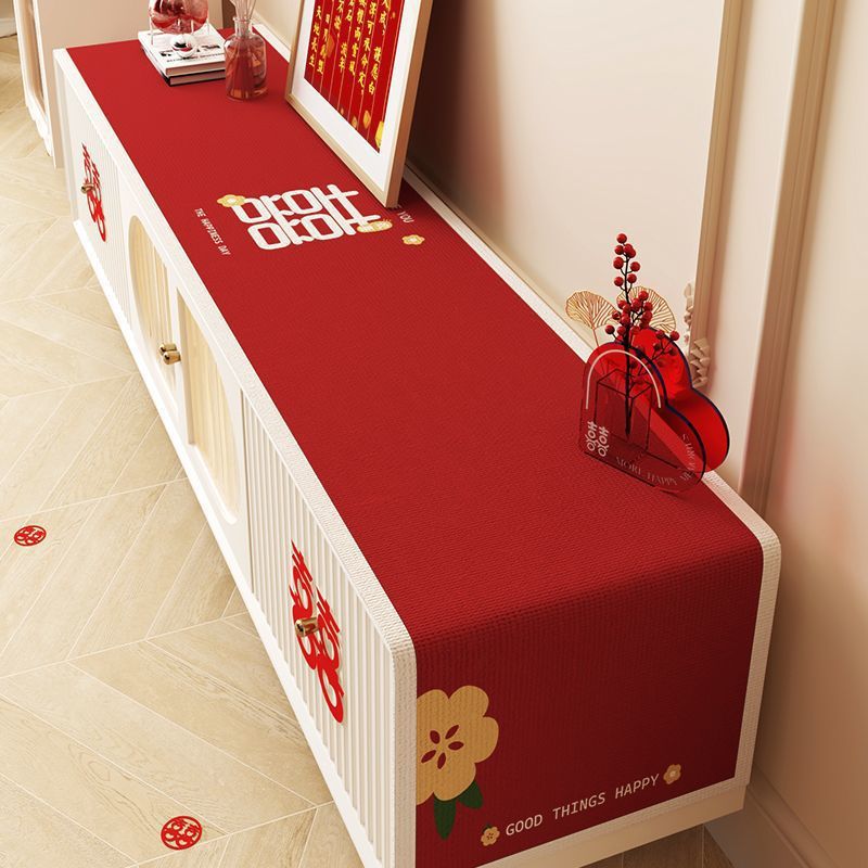 結婚テレビの棚のテーブルクロスの赤いお祝いの結婚式の装飾の長い蓋の布の喜字の婚約のお茶の何食の瑞知峰