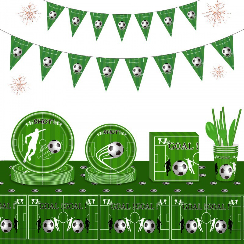国境を越えたワールドカップグリーンサッカーテーマ紙皿セット紙コップテーブルクロス使い捨てパーティー装飾配置用品