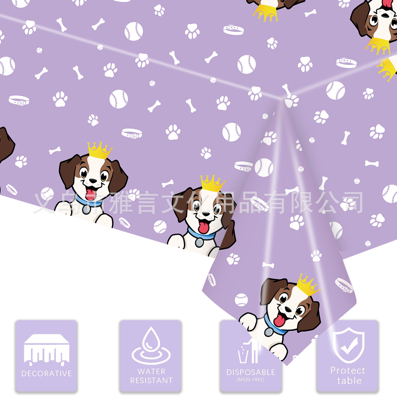 新しい紫色の漫画の犬パーティーテーマパーティーのテーブルクロス用品使い捨てpe防水テーブルクロス背景装飾