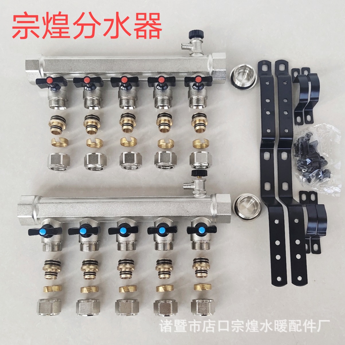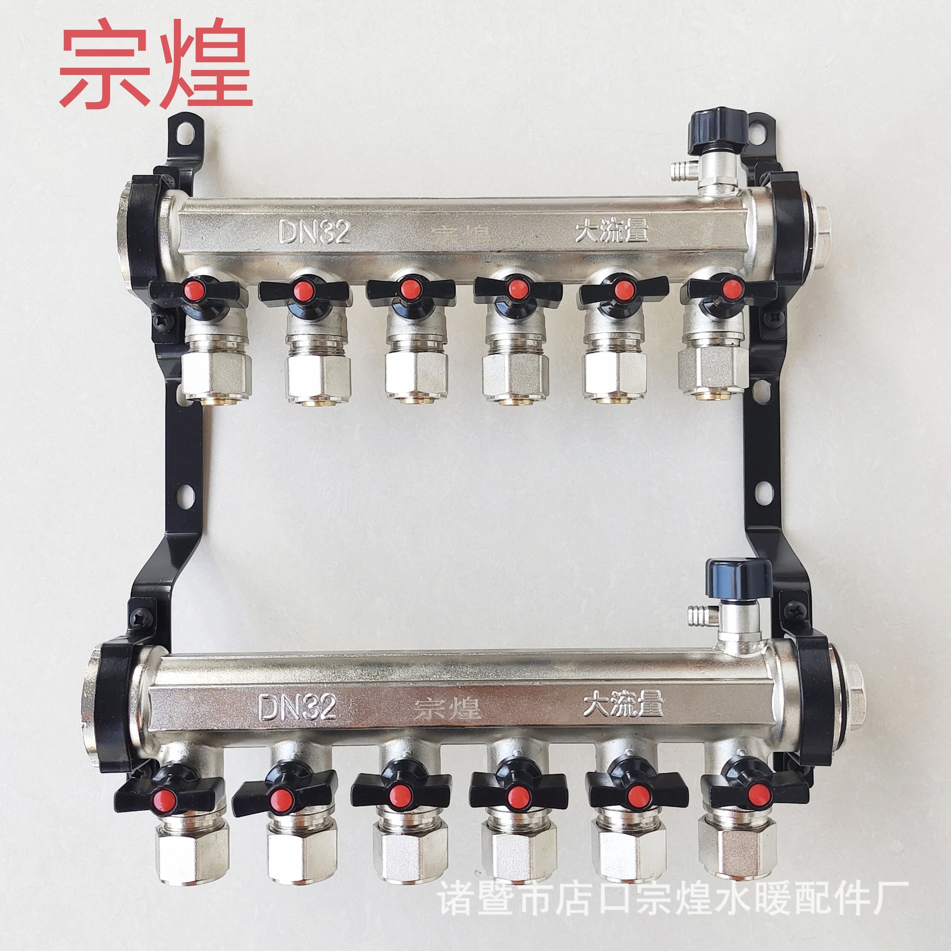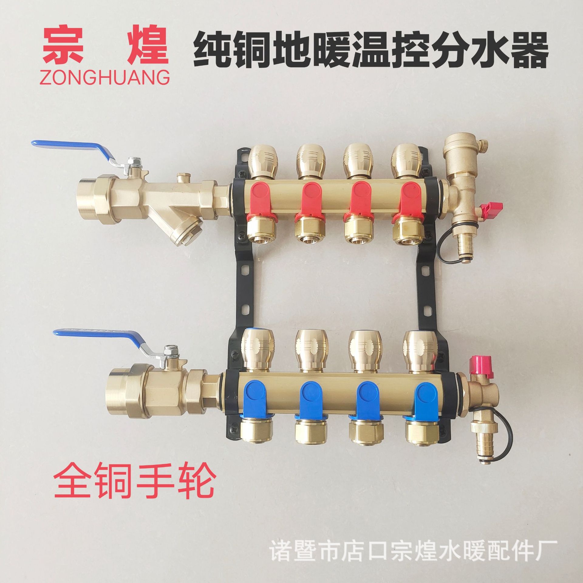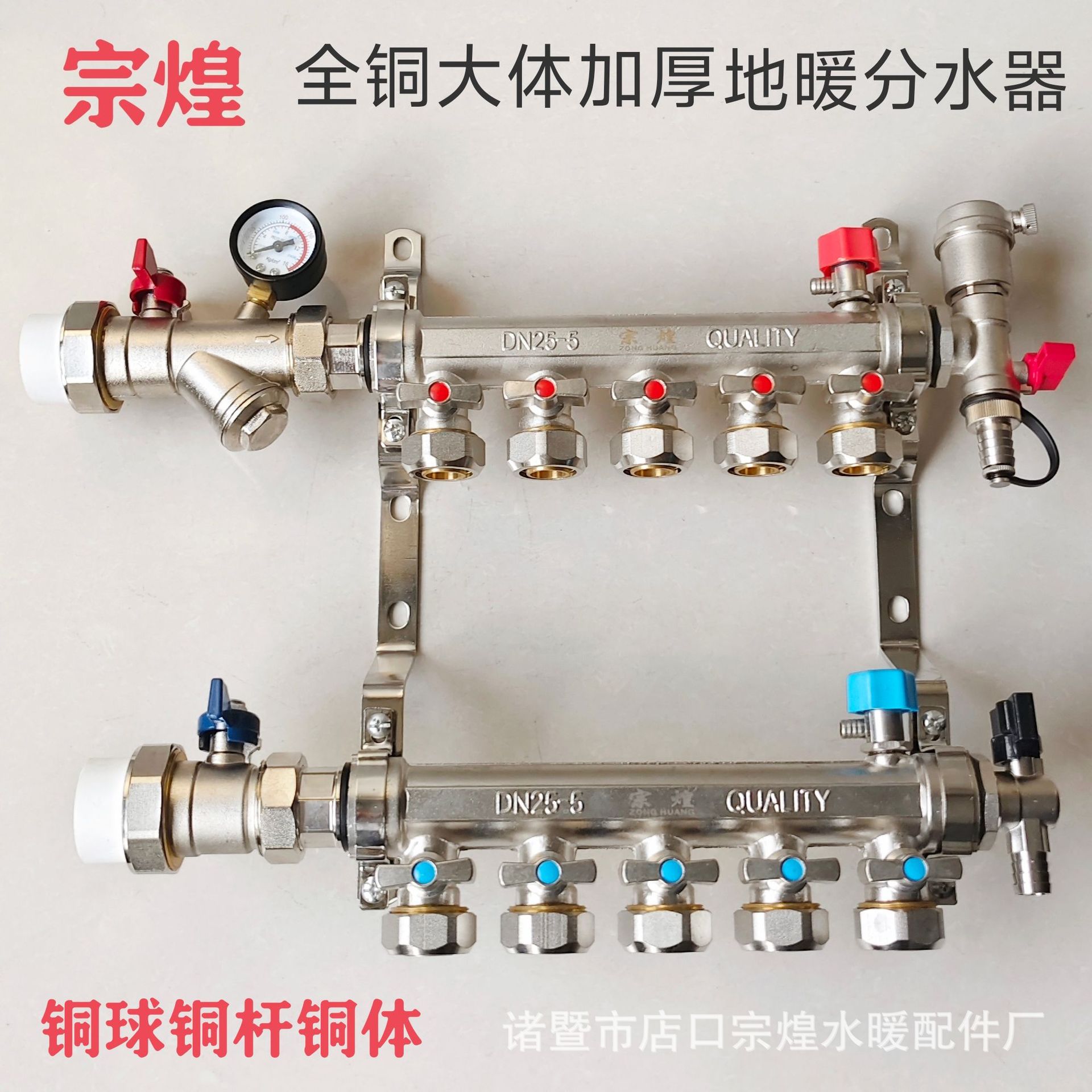 宗煌純銅厚さ1寸主管20地暖管大流量家装一体鍛造地暖分水器セット
