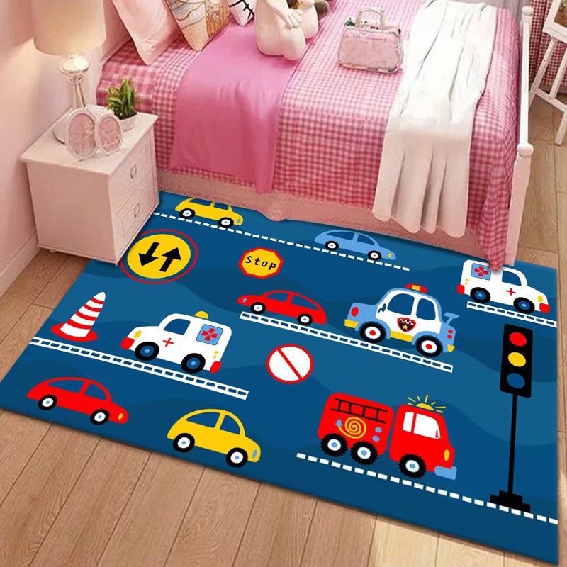 漫画の子供の水晶の毛の寝室のベッドの辺のじゅうたんの子供の部屋は早く交通を教えます。
