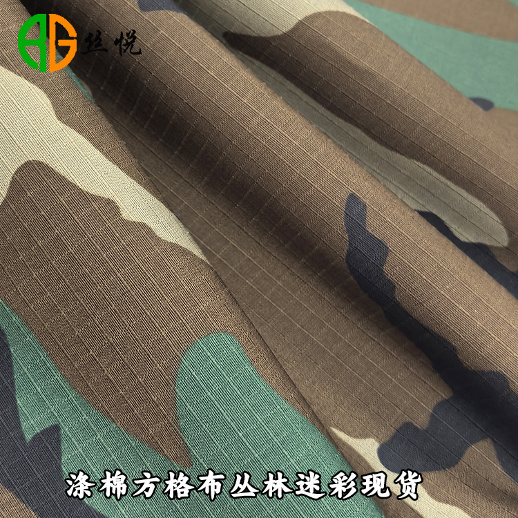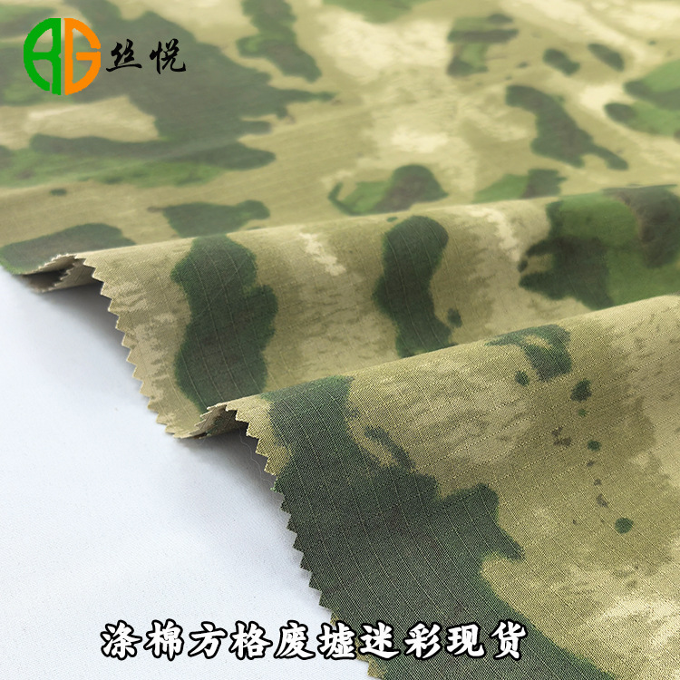 現物直供田字格ポリエステル綿混紡グリーン廃墟防水引き裂き防止格子迷彩布生地