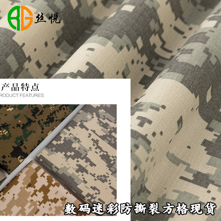 メーカーはTCの引き裂き防止ポリエステル綿混紡砂漠デジタル引き裂き防止格子迷彩生地の現物を直接供給している