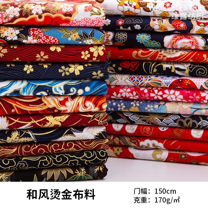 新商品日系和風生地手作りdiy着物漢服マスク工芸品箔押しプリント綿布生地