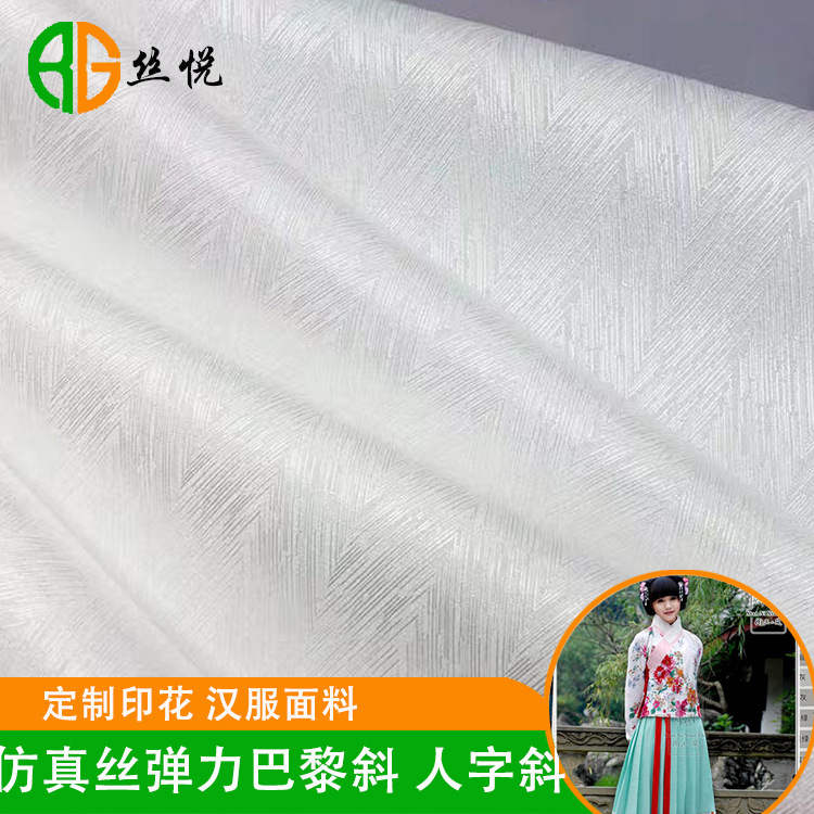 模擬シルクサテンストレッチジャカードヘリンボーン斜めパリ斜め白プリント素材パジャマ漢服デジタルプリント生地