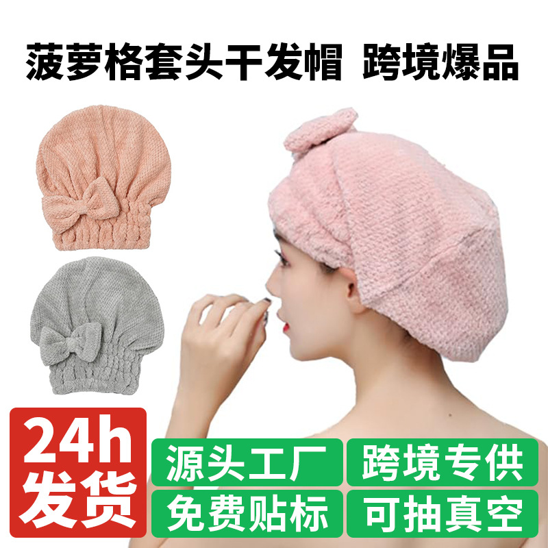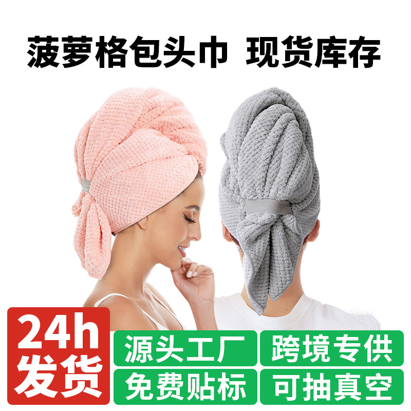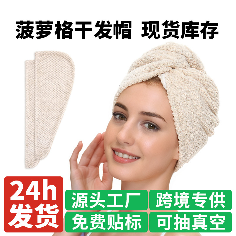 クロスボーダーパイナップル柄ドライヘアキャップ 女性用 家庭用 厚手ヘアタオル ヘアケア 吸水速乾 コーラルベルベット ヘアターバン