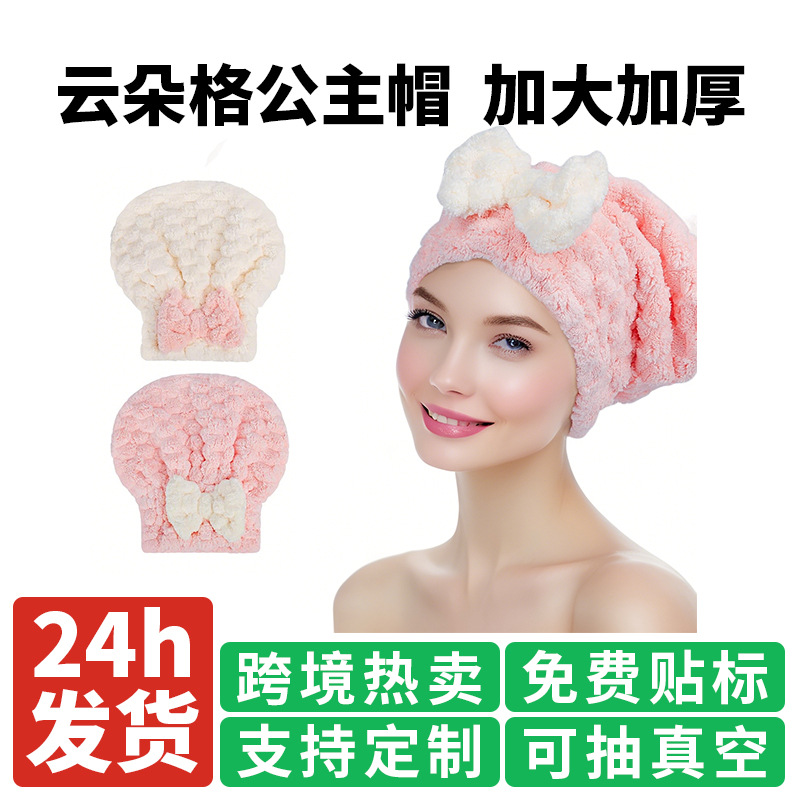 クロスボーダーの髪の帽子のサンゴの毛の女性の2025年の新型の速乾の頭巾のかわいい吸水の蝶結びの王女の風呂の帽子