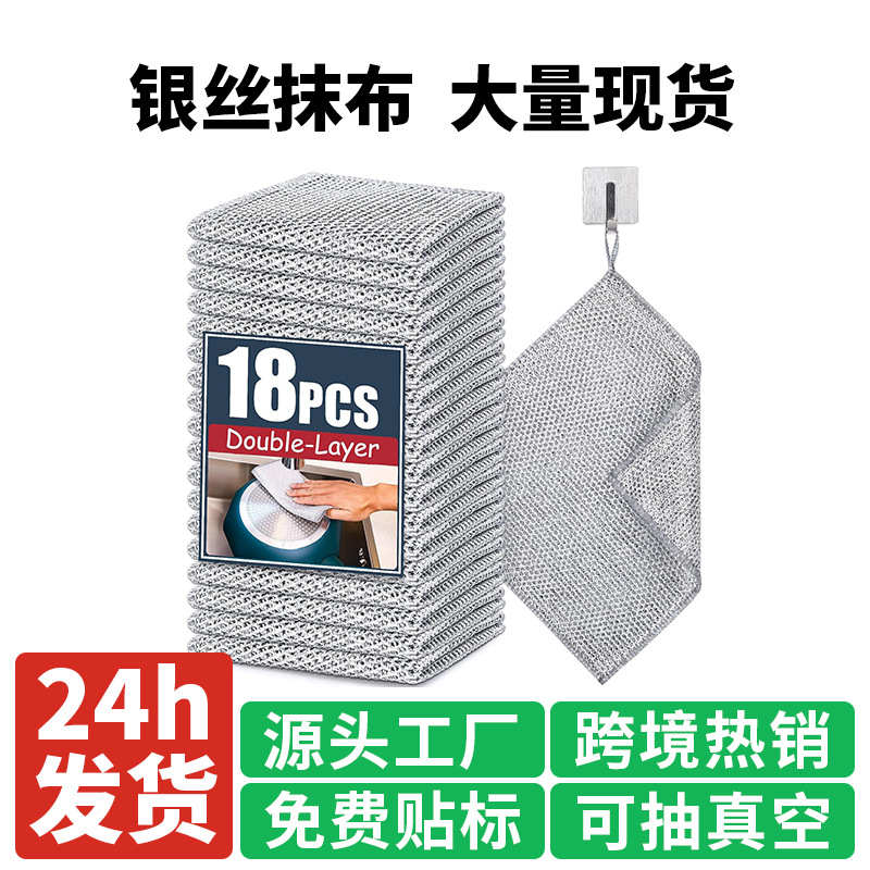 クロスボーダー銀糸皿洗い布のアップグレード清潔雑巾銀糸両面メッシュキッチン真空包装皿洗いタオル
