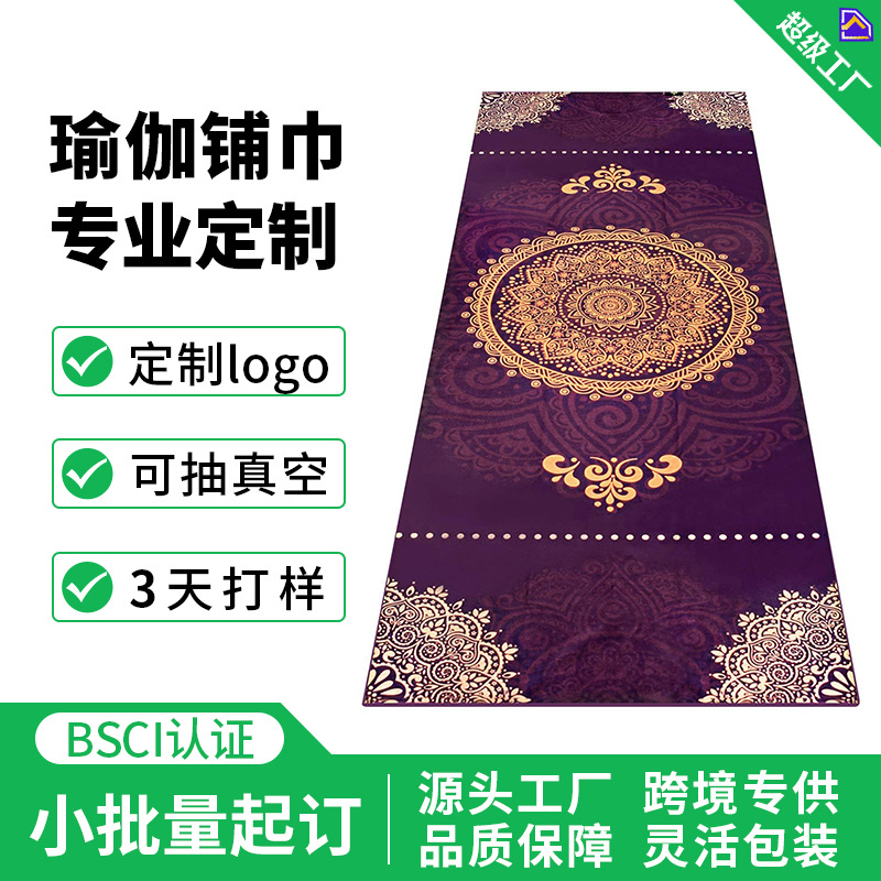 カスタマイズされた国境を越えた売れ筋ヨガマットタオル女性用マイクロファイバー滑り止め吸汗性洗濯機で洗える折りたたみヨガタオル
