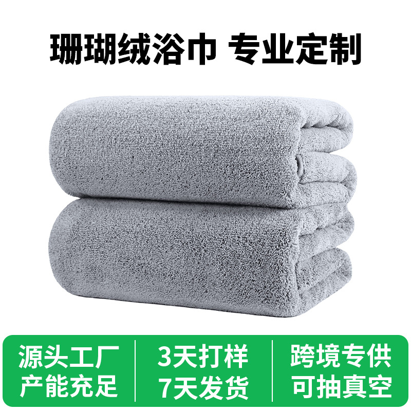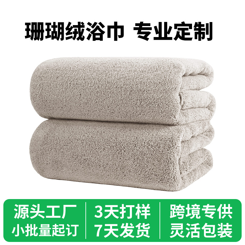 ロゴが印刷されたカスタマイズされたクロスボーダーコーラルベルベットビーチタオル、強力な吸水性と糸くずの出ない、高級家庭用大人用バスタオル