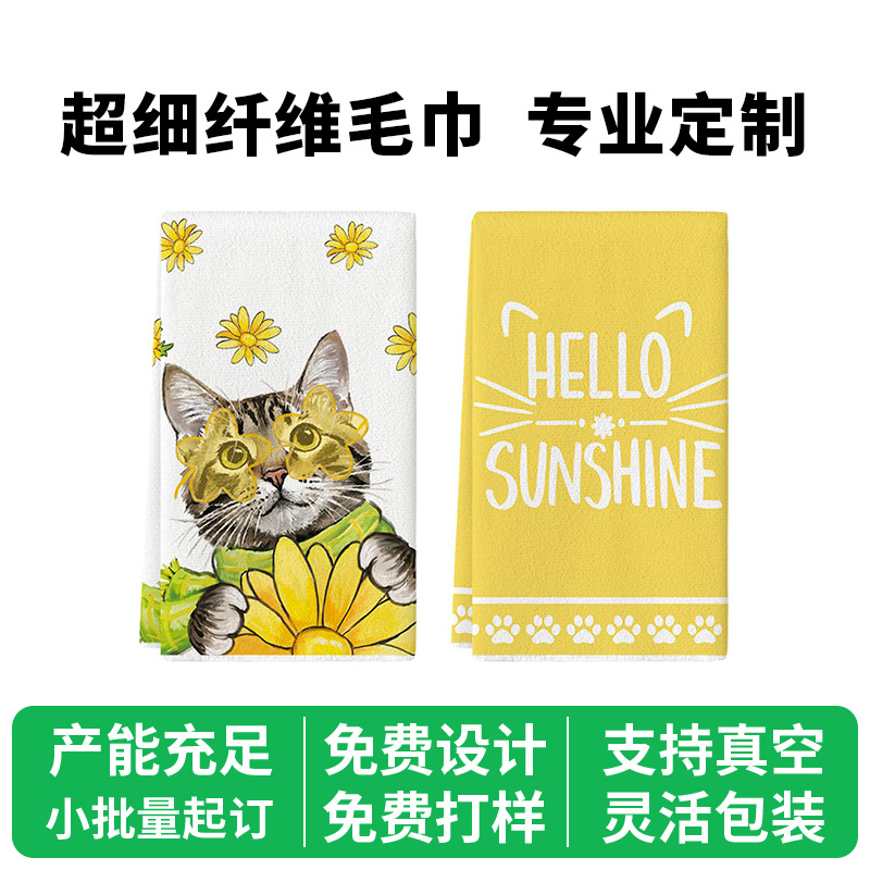 クロスボーダーカスタマイズハンドタオルtemu売れ筋ディッシュタオルキッチン吸水性たわし図面デザインプリント大型タオル