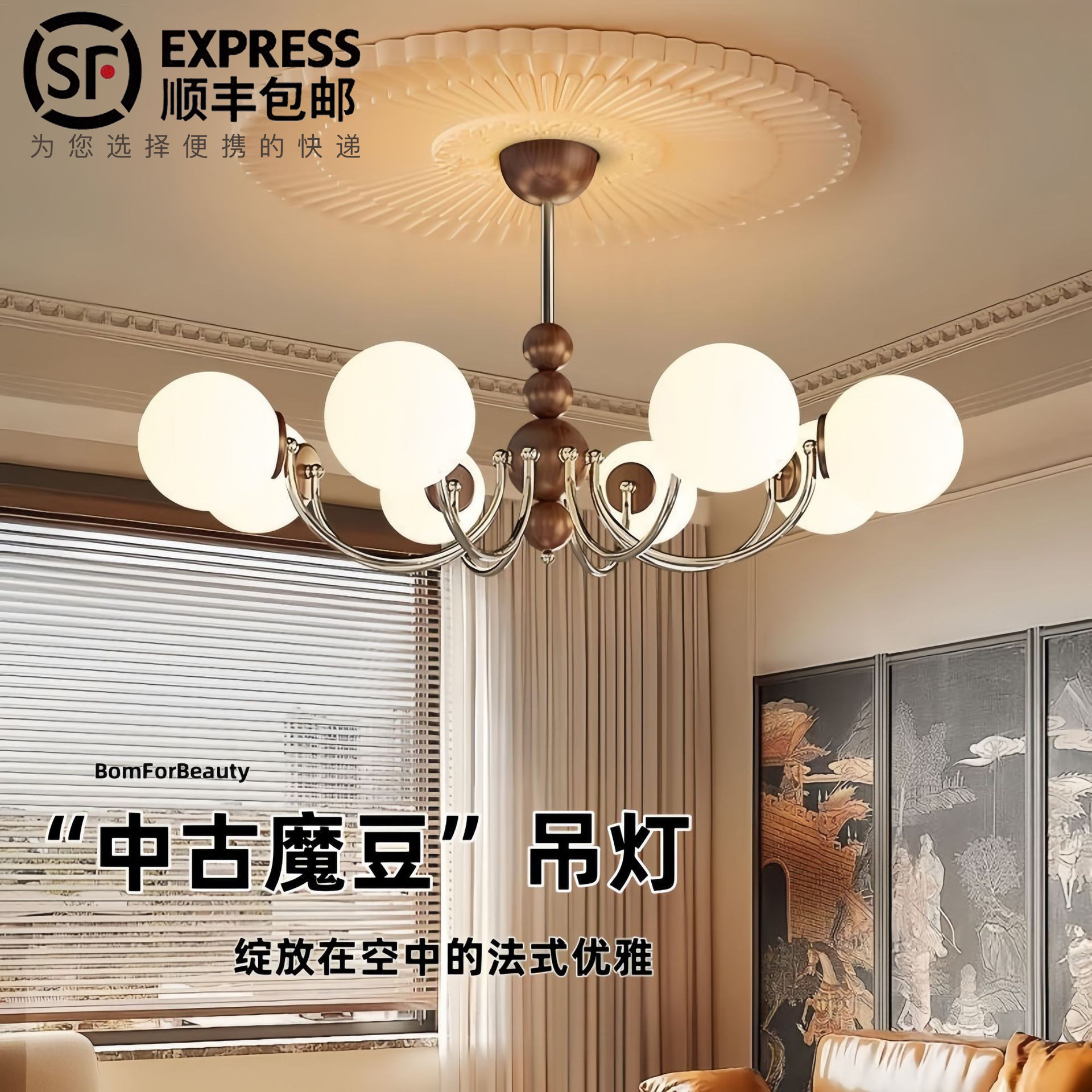 中世スタイルのリビングルームシャンデリア宋代美学2025新しい南洋スタイルのメインライト中山照明器具家全体パッケージの組み合わせ