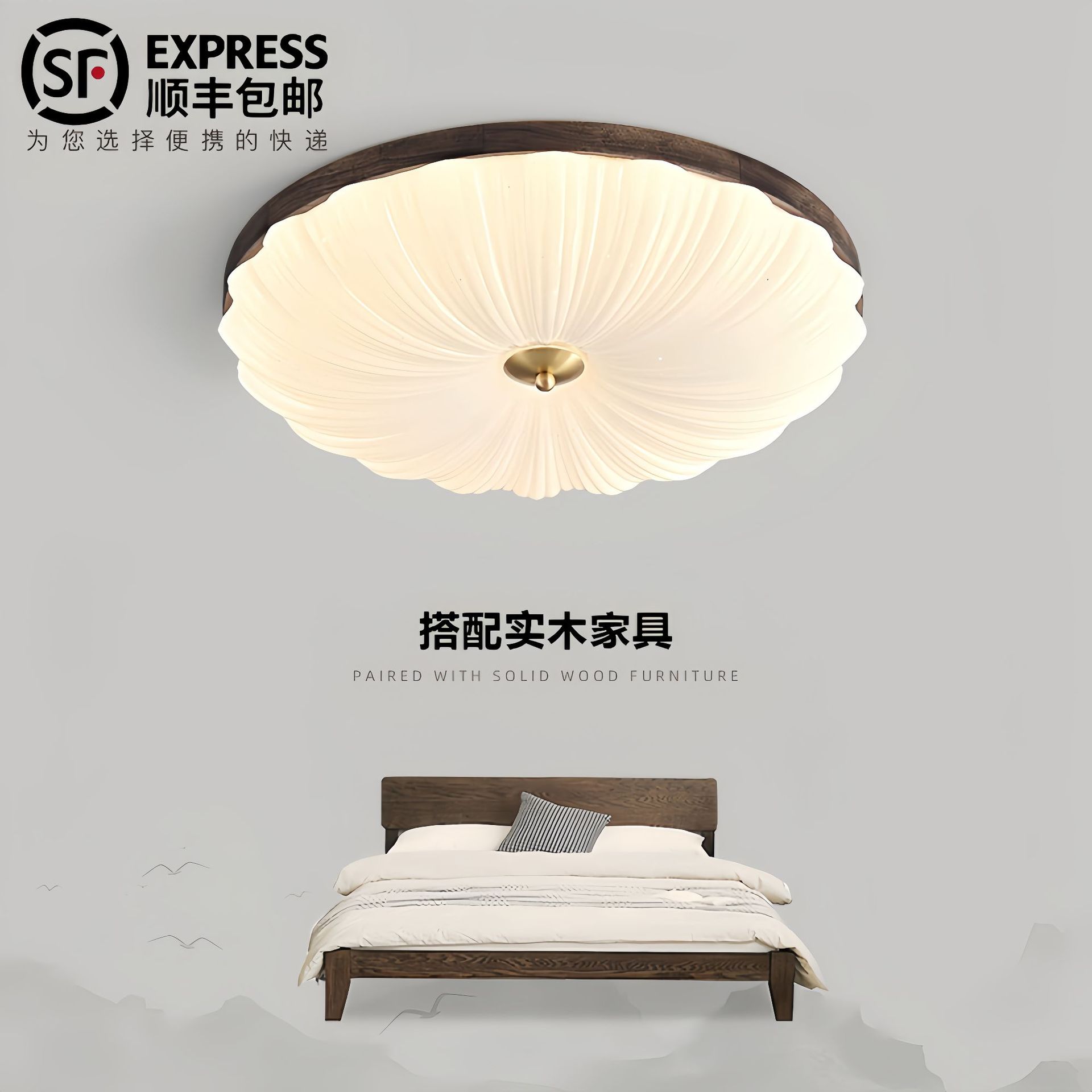 新中国式天井灯北米黒胡桃木超薄客間天井灯寝室灯中山灯具全屋コース