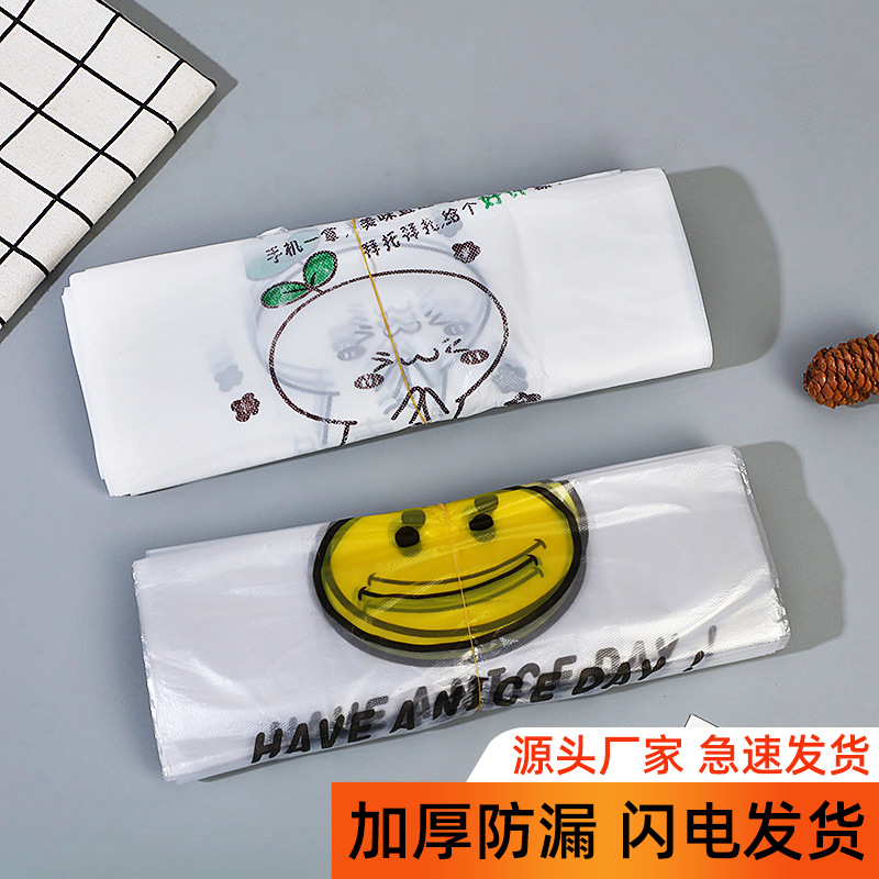 漫画テイクアウトバッグ飲食店使い捨てビニール袋笑顔手提げ袋スーパーショッピングベストバッグ