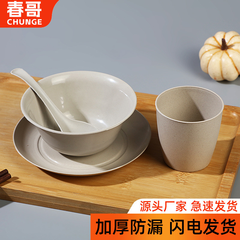 一度に籾殻環境保護食器食器セットの屋台レストランの食事4点セットの屋外キャンプを説明できます